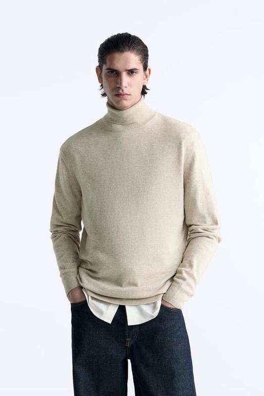 Цвет: Бежевый 40% вискоза 35% полиамид 20% ВОЛНА 5% КАШЕМИР Трикотажный свитер с воротником водолазкой, длинными рукавами и окантовкой в рубчик. Смешанная штапельная ткань с вискозой и 20% шерсти. Плечи 45 Груди 55 Рукав 62 Длина 68