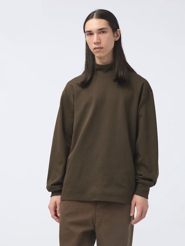 Состав: 56% хлопок, 44% полиэстер Brushed Lined Mock Neck T-Shirt | Long Sleeve мягкая и удобная ткань с высокой горловиной манжеты в рубчик позволяют легко закатать рукава со спущенными плечами на модели размер М, рост 185см