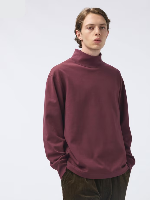 Состав: 56% хлопок, 44% полиэстер Brushed Lined Mock Neck T-Shirt | Long Sleeve модель оверсайз мягкая и удобная ткань с высокой горловиной манжеты в рубчик позволяют легко закатать рукава со спущенными плечами на модели размер М, рост 186см