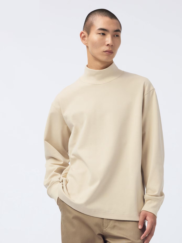 Состав: 56% хлопок, 44% полиэстер Brushed Lined Mock Neck T-Shirt | Long Sleeve модель оверсайз мягкая и удобная ткань с высокой горловиной манжеты в рубчик позволяют легко закатать рукава со спущенными плечами на модели размер М, рост 186см