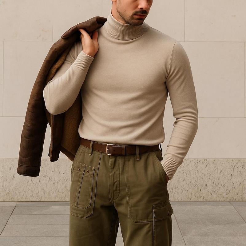 Гольф кашемір Ціна- 1190 грн Кольори: бежевий, сірий, чорний, синій, темно-синій Розміри: S-M L-XL Класичний гольф Виробництво: Туреччина Основна частина: кашемір 30%, тонка вовна 50%, мікроакрил 20% М'який на дотик матеріал Приталений крій Зріст та вага на моделі: 182/85 Розмір на моделі: L-XL