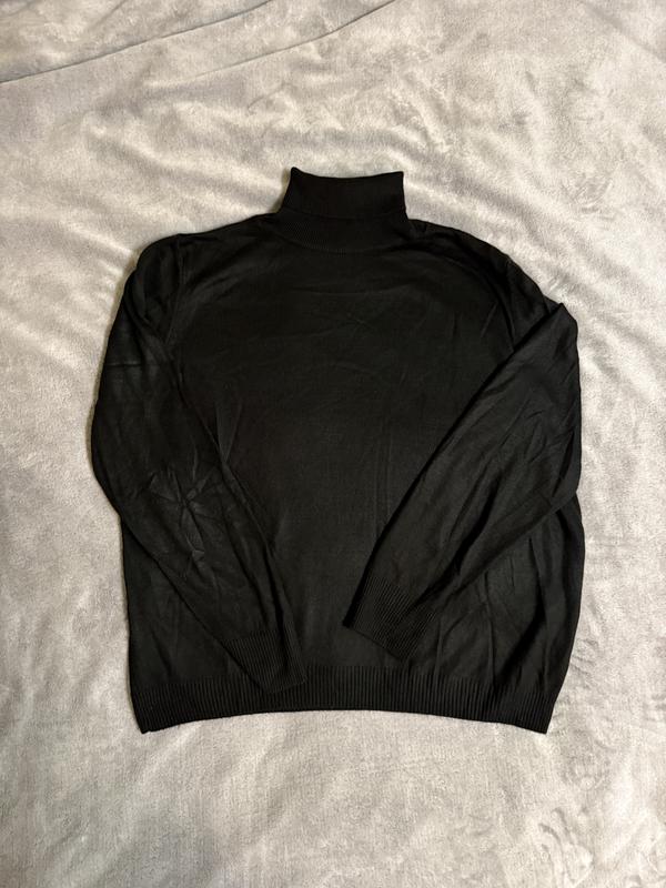 Тип: В'язаний светр з високим коміром (Гольф/Водолазка). Бренд/Лінійка: Defacto Basic. Колір: Чорний. Розмір: 3XL. Особливості: Тонка машинна в'язка у вертикальний рубчик. Високий комір-стійка. Заміри: довжина 68см, плечі 46см, рукав 65см, ширина 65см, низ по резинці 55см.