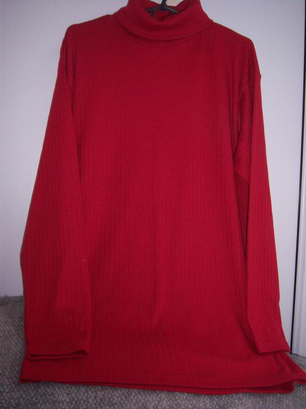 Красивая качественная водолазка,состав ткани : 70% коттон 30% полиэстер Замеры: ОГ-106см. ОБ-106см. длина по спине- 77см. длина рукава от плеча-60см.Цвет как на фото -не ярко красный а более к кирпичному.