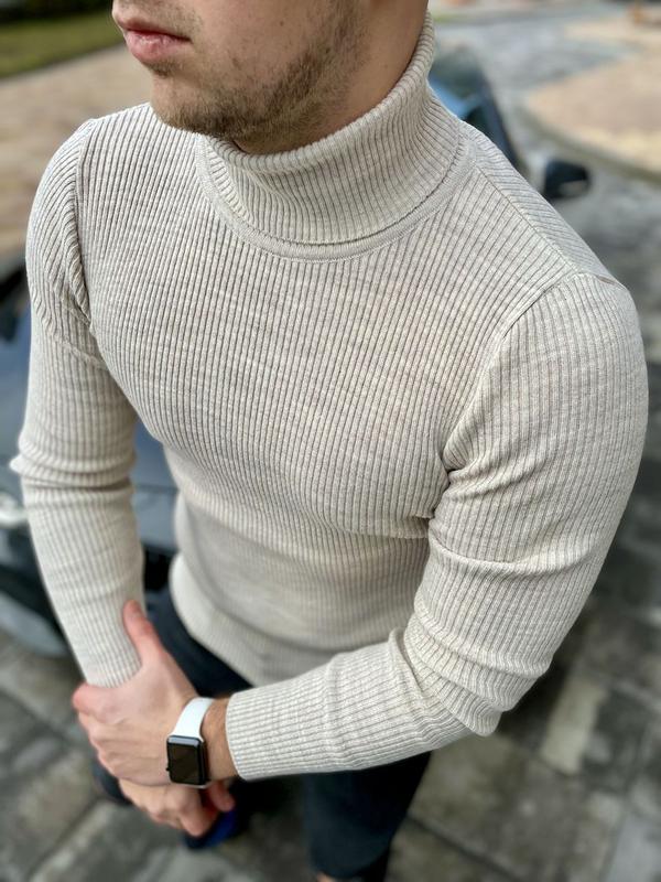 Бежевый гольф в рубчик ✖ Размеры: M L XL XXL ∎ Классический гольф в рубчик ∎ Ткань: Турция ∎ Основная часть: шерсть 50%, акрил 50% ∎ Мягкий на ощупь материал ∎ Приталенный крой Рост и вес на модели: 182/85 Размер на модели: L
