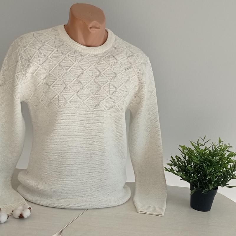 свитер мужской белый с коричневым легкий состав 50% коттон 50% акрил производство Турция размер М XL замеры м ПОГ 43 длина рукава 61 плечи 41 высота 70 замеры XL ПОГ 48 длина рукава 62 плечи 44 высота 70