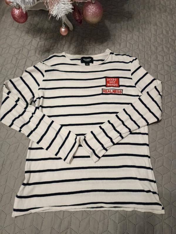 кофтинка в полску,біло-синя Плечи 44 По под рукавами 47 Рукав от плеча 60 Длина 60