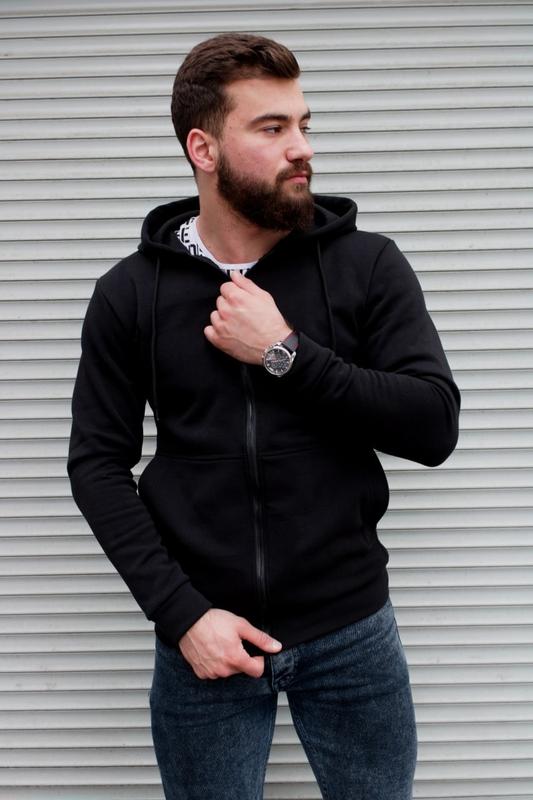 Практична утеплена кофта на кожен день, гарної якості 🔶Артикул: 2104 🥼Чорна чоловіча кофта з капюшоном на флісі 💵Ціна: 880 грн. 📐Розміри: S,M,L,XL | від 65 до 100 кг. 👍Матеріал: 80% бавовна, поліестер 15%, еластан 5%. Тринитка на флісі.