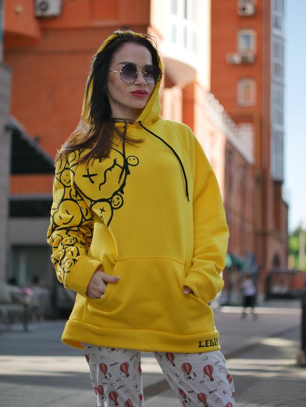 Оригинальное худи с эксклюзивным принтом желтого цвета