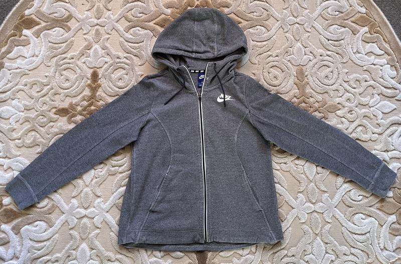 Кофта/зип худи на молнии с капюшоном от известного спортивного бренда Nike,серого цвета с логотипом бренда на груди и спине. Состояние отличное,без нюансов