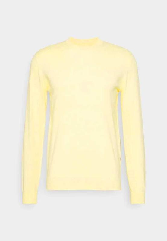 мужская кофта круглый вырез горловины длинный рукав манжеты на рукавах и кофте цвет: бледно-желтый