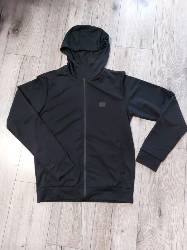 Кофта мужская с капюшоном на замок. Имеет манжеты внизу и на рукавах.