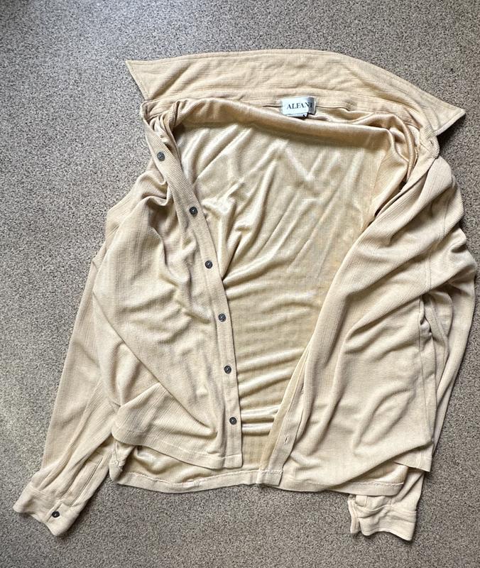 Рубашка - кофта в идеальном состоянии. Винтажная. Очень приятный материал. Указан размер ххл, но носилась как накидка на Л.