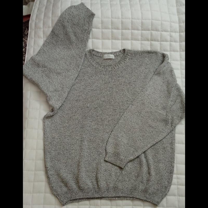 строгая кофта вязанная серобелорябого цвета. рукава низ резинка.британия страна.ткань:80- хлопок*20- акрил.размер указан как XL.но на деле потерял там все XXXL.тоесть большая.и замер всегда важнее чем номер.плечи-68*66.5- грудь*63- рукава*72- спина*5- низ резинка.стирана.состояние очень хорошее.