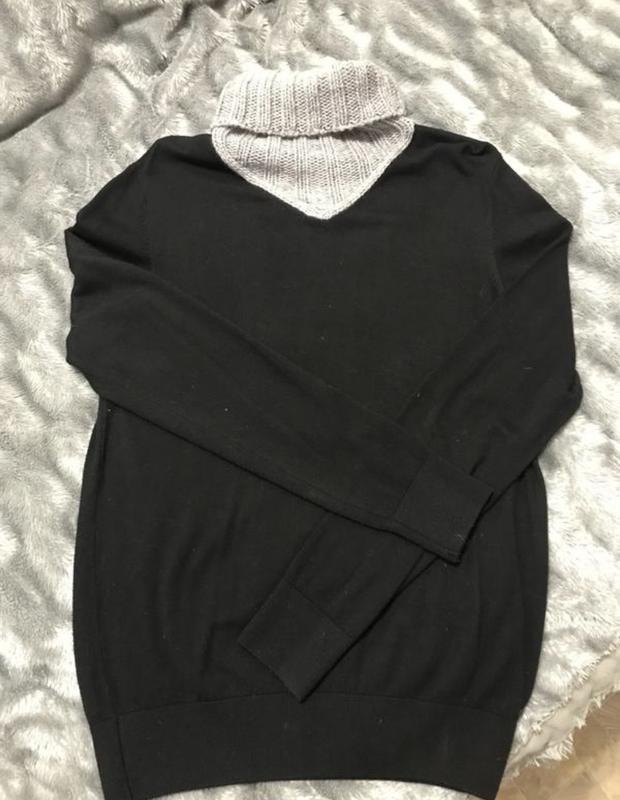 Стильный свитер в идеальном состоянии, приятный на ощупь, с горловиной. длина 70, пог 50, рукав 70. Тканина тягнеться.