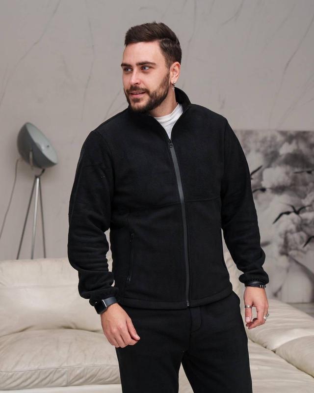 Чоловіча флісова кофта на замку, офісна тепла на осінь, зиму з кишенями