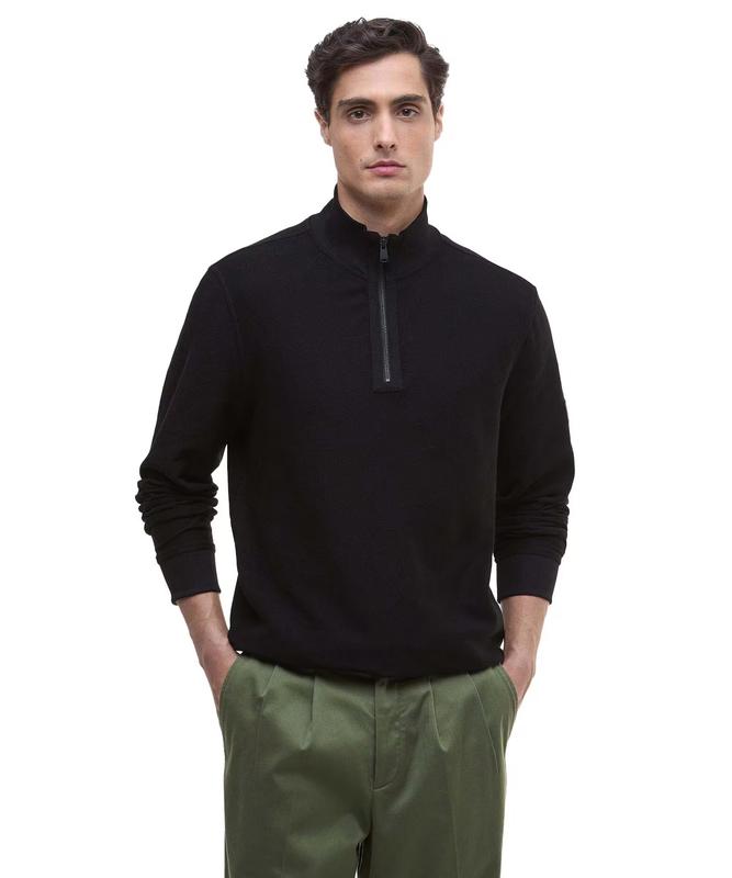 Barbour international 1/4 zip polo sweatshirt black long sleeve classic casual чоловіча ко...