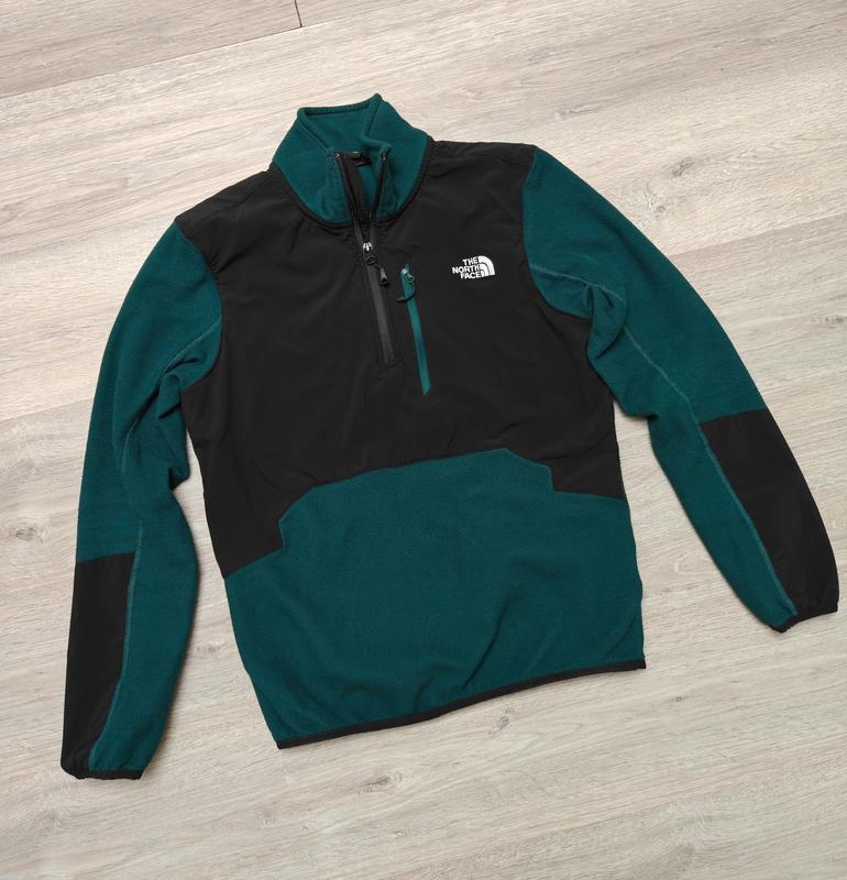 Продам оригинальный подростковый флисовый свитер The North Face с застежкой, флисовая кофта в крутом двухцветном дизайне (изумрудный с черным). Идеальный вариант для активного отдыха или в качестве среднего слоя для повседневной носки. В отличном состоянии. Мягкий, теплый флис с водоотталкивающими тканевыми вставками на плечах и груди (для защиты от износа и легкого дождя). The North Face Mens Glacier Pro Quarter Zip ЗАМЕРЫ - длина от плеча, начала шеи - 63.5 см ширина 48.5 см рукав от плеча - 62см