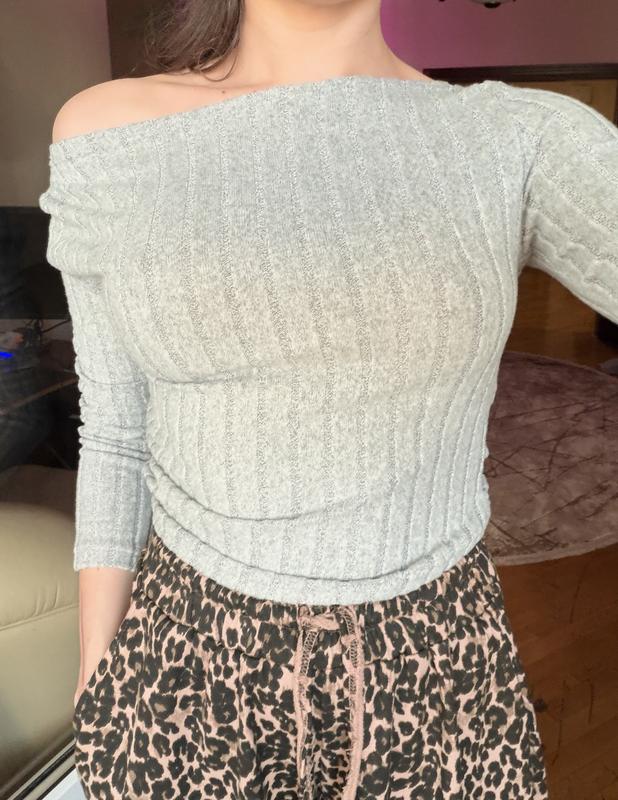 Кофтинка приємна на дотик мʼяка. До талії. Рукав довгий. З одного боку є ризиночка яка робить складочки.