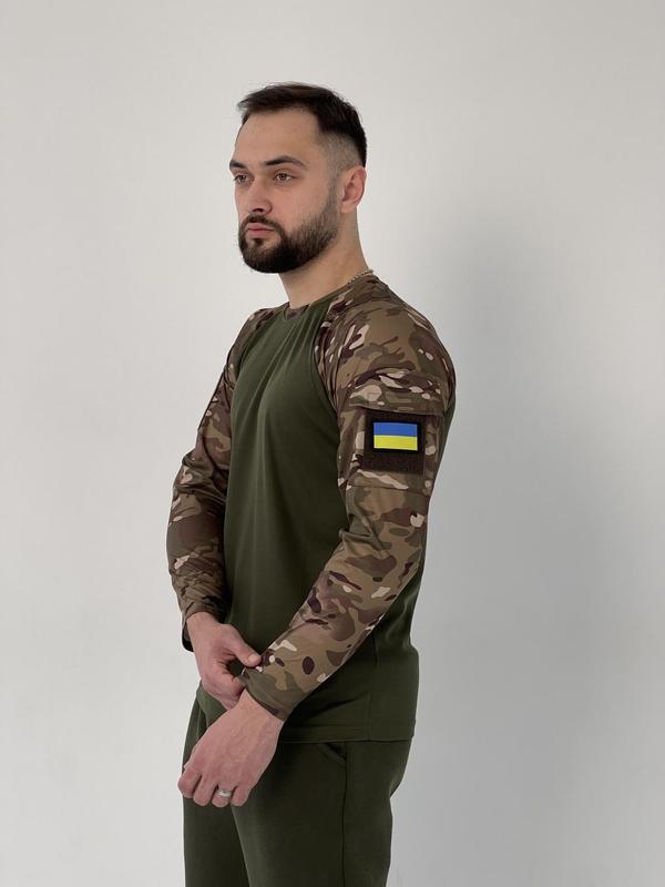 Лонгслів - футболка з довгим рукавом; - матеріал: coolmax. Тканина відмінно пропускає повітря, швидко сохне та має гіпоалергенні властивості. Ці характеристики дозволяють використовувати coolmax багатьма арміями світу для виробництва одягу для солдатів. - Воріт круглий. - На рукавах є липучки.
