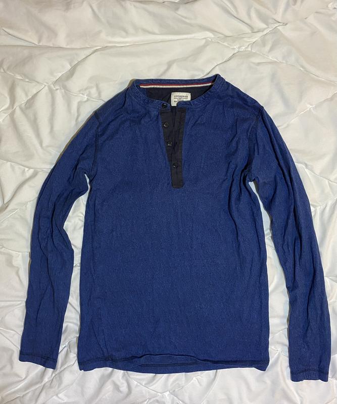 Мужской лонгслив от Lindbergh. Синего цвета. В хорошем состоянии. Без повреждений и дефектов. Размер S, M. Длина рукава - 63 см. Длина кофты - 63 см. Ширина кофты - 86 см.