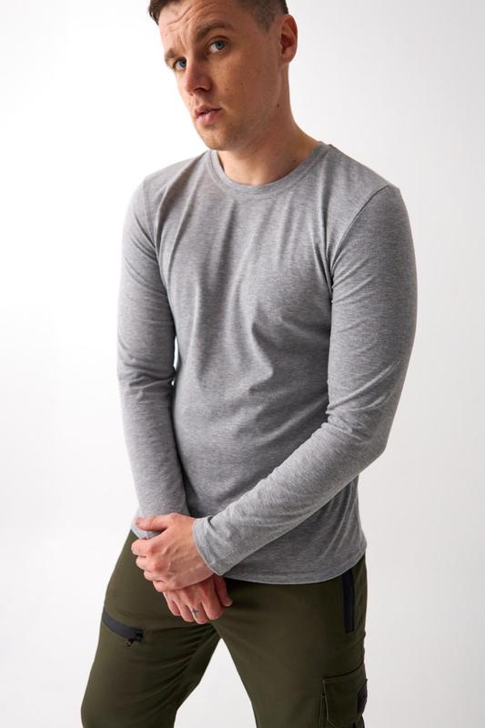 Лонгслів - футболка з довгим рукавом; - Матеріал: бавовна з додаванням еластану. Тканина легка, тактильно приємна, добре тягнеться; - Горловий виріз круглий. Силует приталений. - Сезон Весна/Осінь Сірий Хакі Чорний