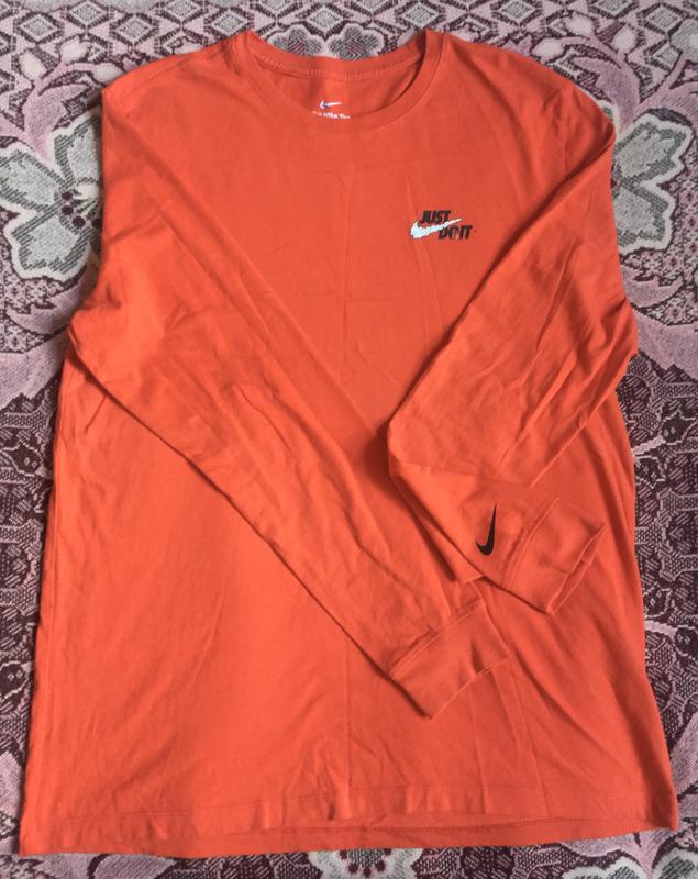 Красивый и яркий лонг от найка. Коллекций 23 года. Цвет — оранжевый. С маленьким лого спереду та великим сзаду. Состояние отлично. Размер XL, смотрите замеры на фото. Довжина 81 см.