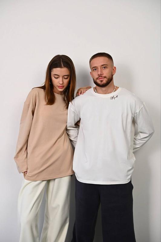 Новинка unisex Лонг с вышивкой Арт 817 Материал хлопок с вискозой Размер oversize Молочный , бежевый , черный