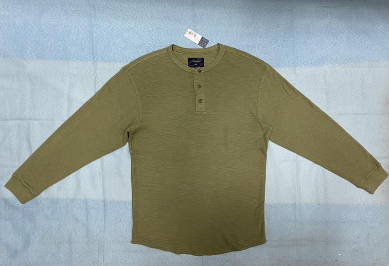 Лонгслив батник мужской американского бренда Roundtree & Yorke, серия Casuals, цвета хаки, производство Индии, материал : 100% хлопок! Хлопок плотный и мягкий, горловина на 3-х пуговицах! Хорошо тянется и пружинит, хорошего качества, в запасе есть пуговица! Размер: (на средний / высокий рост) US ( М ): ширина (в комди ) - 53 см, длина (перед) - 70 см, длина (спина) - 74 см, рукав - 62 см, рукав (от шва проймы ) - 51 см, плечи - 52 см. Замеры длин спереди и со спины данные от края горловины, рукава - от шва плеча, плечи - расстояние между швами плеча!