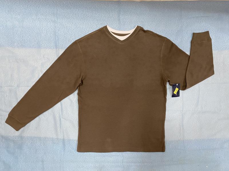 Лонгслив мужской американского бренда Roundtree & Yorke, коричневого цвета, производство Филиппин, материал : 100% хлопок! Хлопок плотный и мягкий! Хорошо тянется и пружинит, хорошего качества! По плечам и рукаву есть незначительное освещение цвета, сопоставимое после стирки! Размер: (на средний) US ( М ): ширина (в комди ) - 55 см, длина (перед) - 69 см, длина (спина) - 72 см, рукав - 61 см, рукав (от шва проймы) - 49 см, плечи - 52 см. Замеры длин спереди и со спины данные от края горловины, рукава - от шва плеча, плечи - расстояние между швами плеча!