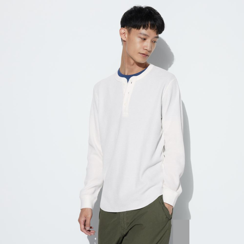 Состав: 60% хлопок, 40% полиэстер WAFFLE HENLEY NECK LONG SLEEVE T-SHIRT вафельная ткань с характерной текстурой разработано с мягким ощущением манжеты в рубчик создают обтекаемый вид и позволяют легко закатать рукава горловина Henley идеально подходит для ношения отдельно или в многослойном образе закруглений дизайн низу