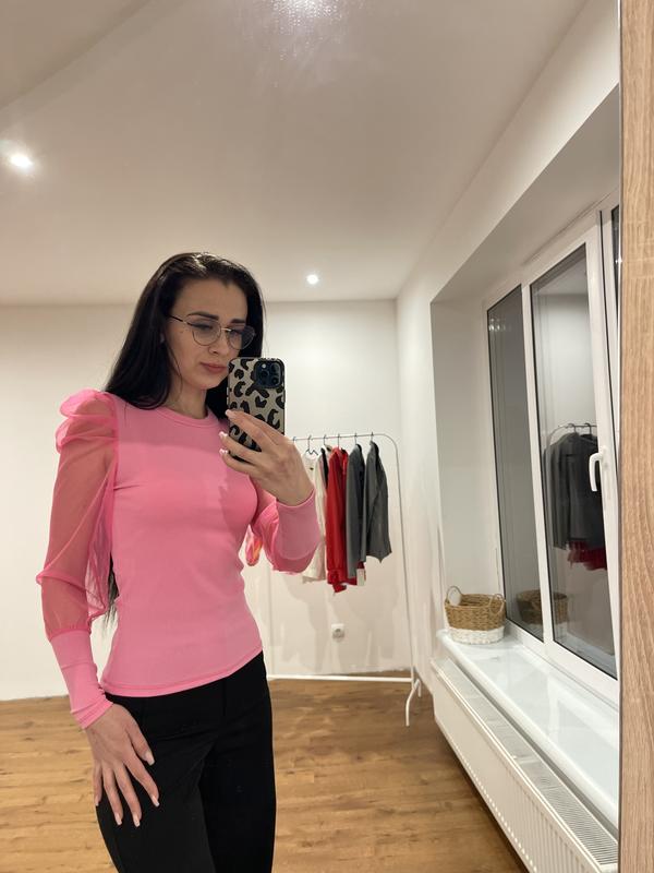 Очень красивый розовый лонг с объемными рукавами из сеточки😍 Размер: универсальный XS/S (ткань красиво приснятся) Замеры : ( пол обхват) 🌸 грудь - 36см 🌸 длина - 55см 🌸 длина рукава - 66см