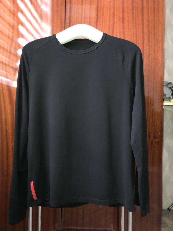 лонгслів Prada чорний, розмір L, з кишенькою ззаду, верхньої бирки немає, нижня запрана груди підм. 52 рукав від коміра 79 см від пахви 52 см довжина 66