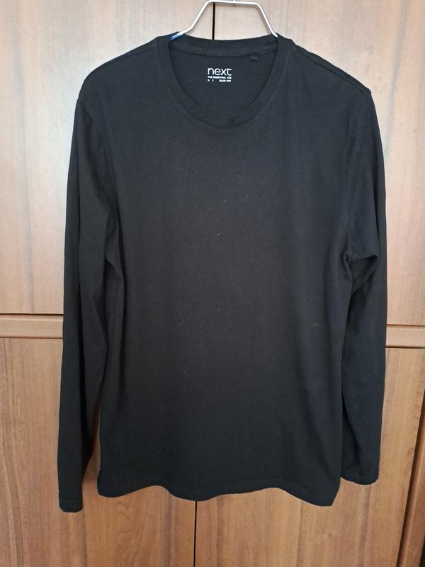 Лонгслив насыщенного черного цвета. Базовая модель с круглым вырезом горловины и длинными рукавами. Размер от производителя- 44-46 (slim fit). Пог.- 52, длина- 73, длина рукава- 67 см. 100% качественный коттон.
