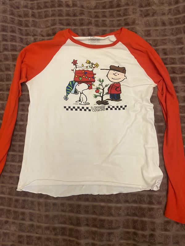 Лонгслів від бренду Vans в колоборації з Peanuts з гарним різдвяним принтом. Принт виконаний не наклейкою,а фарбою,що позитивно скажеться на зносі. Розмір М Рукав від шиї 75.5см П.обхват 50см Висота 69см Лонгслів в ідеальному стані
