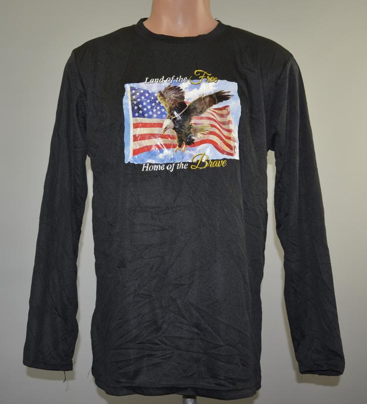 Лонгслив с флагом США (L) Америка Состояние - отличное Плечи - 46см. Подмышками - 55см. (в полуобхвате) Длина рукава - 62см.\48см. Длина по спине - 73см. Смотрите все мои лоты, в продаже много качественных, интересных вещей. Каждую неделю добавляю новые лоты. Все замеры делаю по самой вещи, что-бы покупатель мог точно определиться с размером. Если есть вопросы, задавайте, с удовольствием отвечу. Удачных покупок!