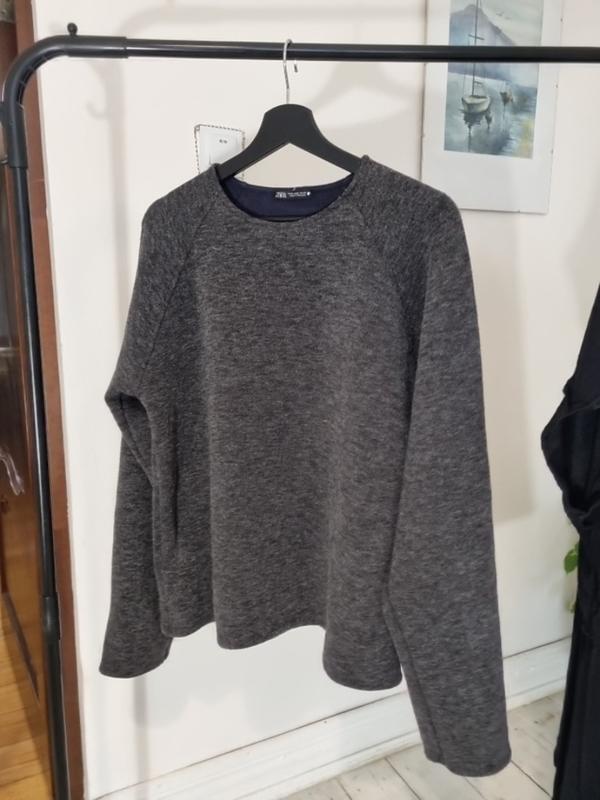 Лонгслив состоит из двух слоев, внутренний-синий, более наружный- серый размер М/mex 28 полуобхват груди 54 длина 61 длина рукава от горловины 78 (реглан) ширина рукава по низу 28