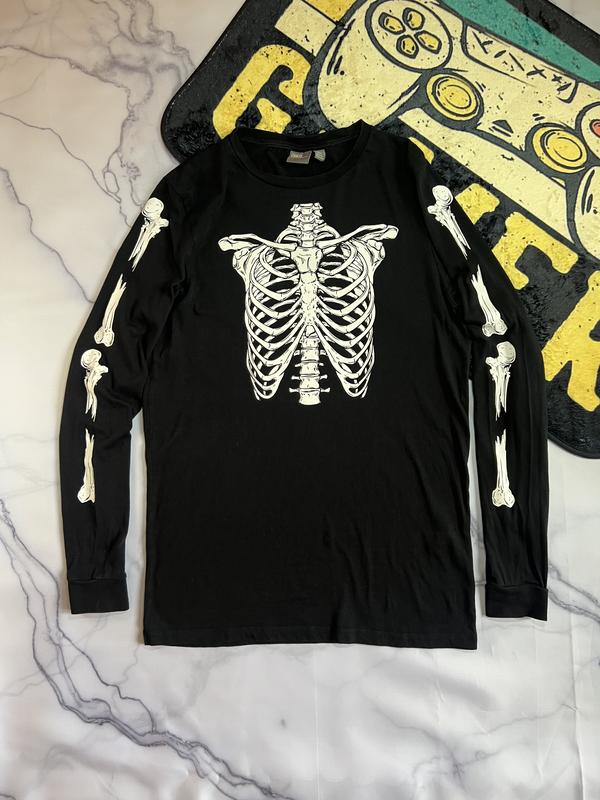 Лонгслив Asos Skeleton _______ Размер: S/M _______ Состояние: идеальный Материал: 100%cotton Страна: Маврикий Замеры: плечи - 43 полуобхват груди - 49 длина - 73 рукав от плеча - 67 рукав от шеи - 78 _______ Цена: 400