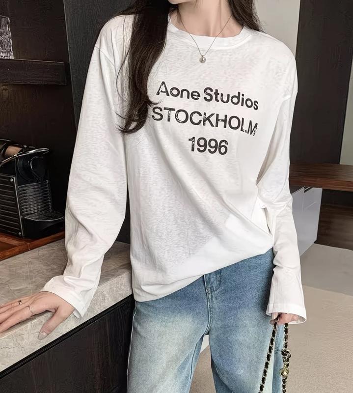 Стильний лонгслів Acne Studios ✨ Базова річ, яка легко поєднується з будь-яким образом. ✔️ 100% бавовна, приємна до тіла ✔️ вільний крій ✔️ колір – білий ✔️ принт “Acne Studios Stockholm 1996” Розмір M Стан – новий 🆕 Ідеально під джинси, шорти чи спідницю – стиль скандинавського мінімалізму завжди актуальний!