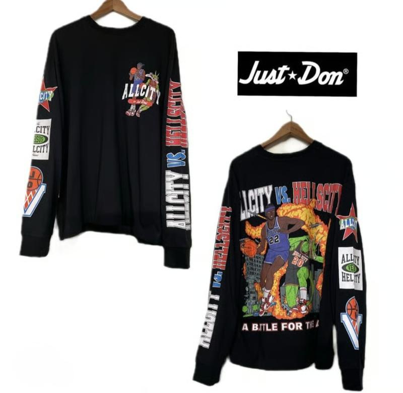 Эксклюзивный лонгслив ALL CITY by Just Don - "BATTLE FOR THE AGES" Это тонкий свитшот от бренда ALL CITY by Just Don. Just Don — это бренд, основанный Доном Кроули (Don C), который славится своими высококачественными изделиями в стиле стритвир и баскетбола.