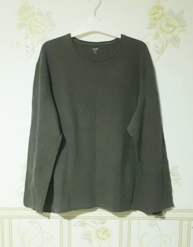 Плотная ткань зеленоватого оттенка. Толстая футболка с длинным рукавом все мерки на фото