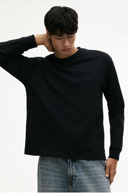 Лонгслів оверсайз (Loose fit) з бавовняного трикотажу середньої товщини. Має ребристий круглий виріз горловини, спущені плечі, ребристі манжети та прямий поділ. 100% бавовна