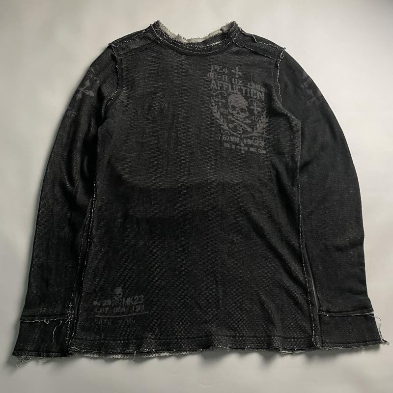 Вінтажний оригінальний двохсторонній лонгслів від бренду Affliction, М-сайз стан 8/10 довжина 76, ширина 52, рукав від горла 79