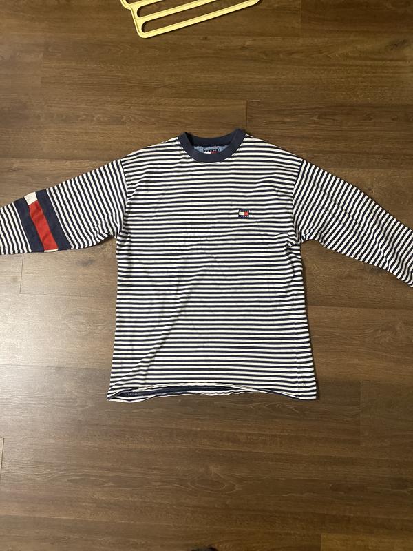 Вінтажний лонгслів Tommy Hilfiger, полосатий з невеликим лого, стан чудовий 9.5/10 без нюансів. Розмір М