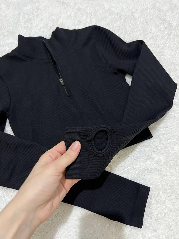 Базовий спортивний лонг з вирізом під пальчик та блискавкою на грудях. Стан нової речі, без нюансів та дефектів. Розмір-XS підійде на невелику S. Заміри: Довжина-37см Довжина рукава-62см Ширина під руками-33см Ширина низ-29см Плечі-32см