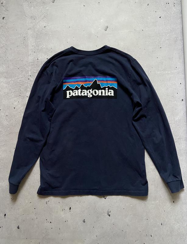 лонгслів Patagonia кольору New Navy. Розмір м Плечі 48 Рукав 67 Груди 54 Довжина 72 Прінт трішки потрісканий , але в очі не кидається, при носінні не видно, стан гарний