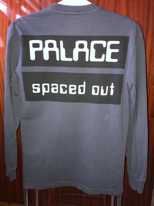 лонгслив Palace Палас Паласе, синий, размер S. большой логотип на спине ПЛЕЧИ 48 СМ, ПОДМЫШКИ 47 СМ, РУКАВ 58 СМ, ДЛИНА 65 СМ есть потеря цвета и две мини дырочки спереди смотрите фото