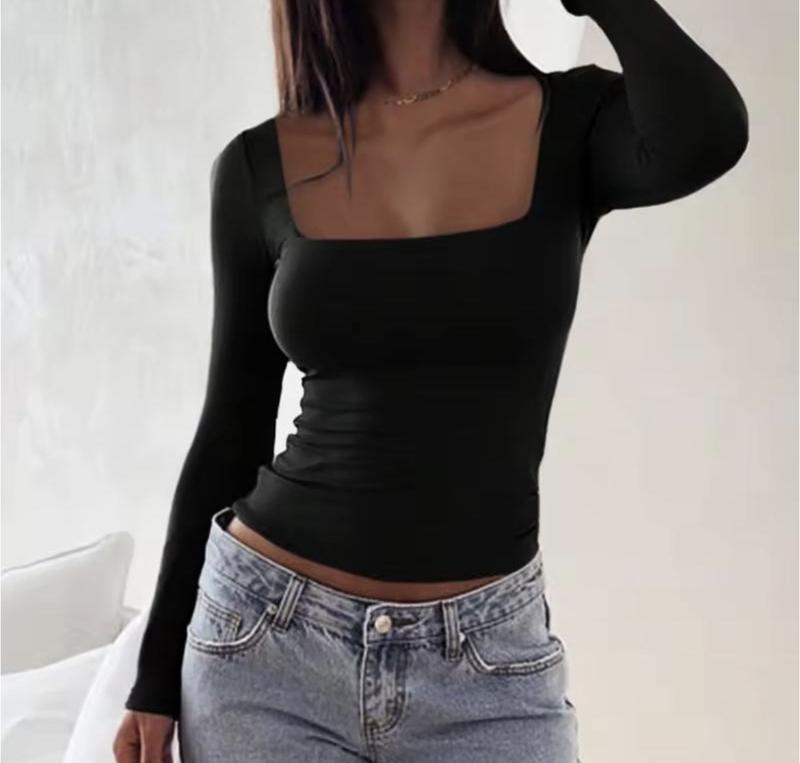 Чорний жіночий лонгслів Матеріал : поліестер Розмір XS-S Квадратний , глибокий виріз