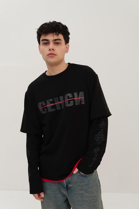 Етнічний український чорний лонгслів