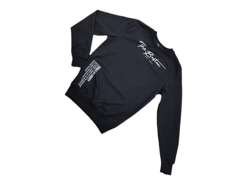 Свитшот из качественной двунитки с принтом. Производство Турция 🇹🇷 Лишь черный цвет с белым трафаретным принтом. Качественный принт, не теряет цвет после стирки. материал 95% коттон, 5% эластан Размеры S M L Xl XXL. наименьшие размеры подходят на подростка. полуобъем по груди,см 48-50-52-54-56 длина,см 68-70-77-73-75 ширина плечей,см 42-44-46-48-50 длина рукава, см 62-62-63-63-63