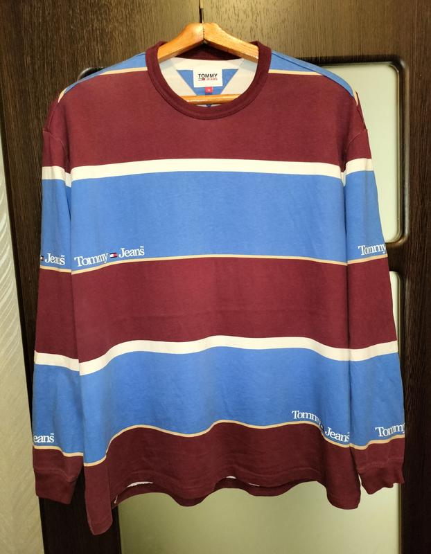ФІРМОВІ РЕЧІ ЗА НИЗЬКОЮ ЦІНОЮ Лонгслів оригінальний TOMMY JEANS р.М. вільного крою, оверсайз, тому може бути і на L. Є невеликий нюанс де не де на білих смугах, на фото 6 показала. В очі не кидається. Дивіться також інші мої оголошення